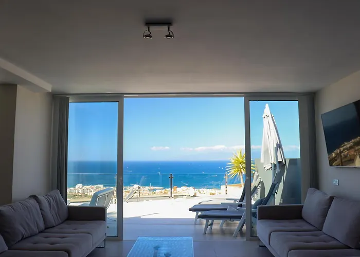 Deze 4-slaapkamer Azure Sky Villa - Panoramic Ocean View, Luxury, San Eugenio Costa Adeje heeft een zwembad voor de ontspanning van de gasten en ligt binnen 25 minuten lopen vanaf het Siam Park. De 4-badkamer villa biedt toegang tot een terras en nodigt gasten uit om Playa El Duque te bezoeken, die 2 km verder ligt.